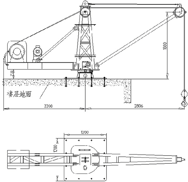 The hoist machine includes base,main frame ,hoist boom,balance arm,bracing piece,rotary mechanism,winding engine,electric system etc.The product advantages are small volume,light weight,the whole machine can be disassembled into parts and assembled at the scene in order to easily transport and install;Adopting frequency converter control for smoothly running,flexibly operating,conveniently using with safe ,stable and reliable performance;The product is widely used in the roof and the high level removal and hoist work in various construction project.